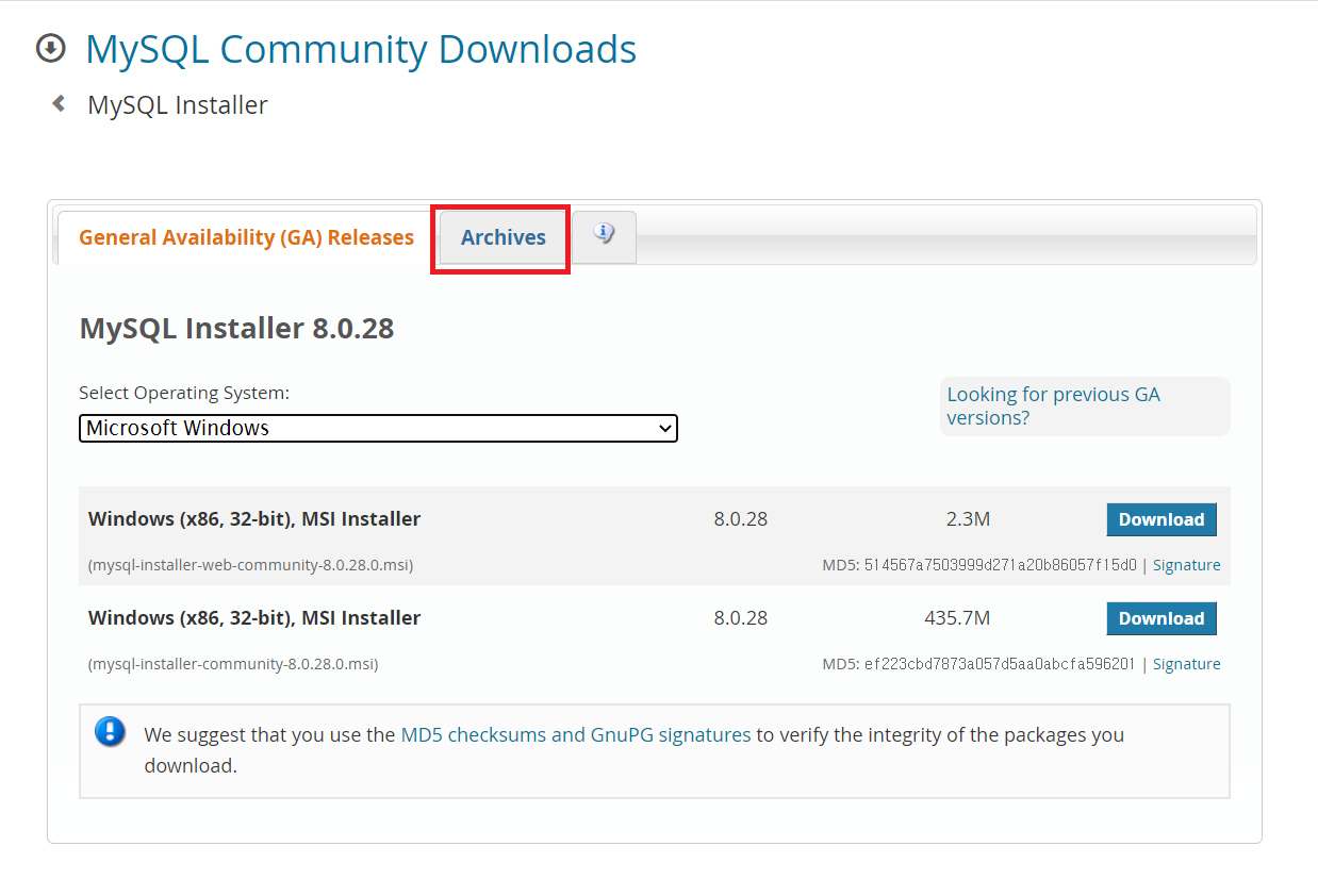 6. Windows (x86, 32bit), MSI Installer 클릭