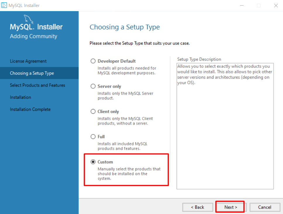 9. 필요한 제품만 선택하기 위해서 Custom → Next