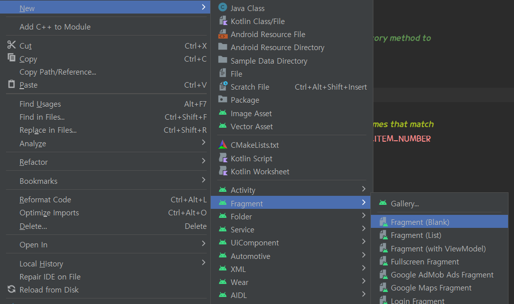 Fragment 파일을 생성한 후 작업 해준다.