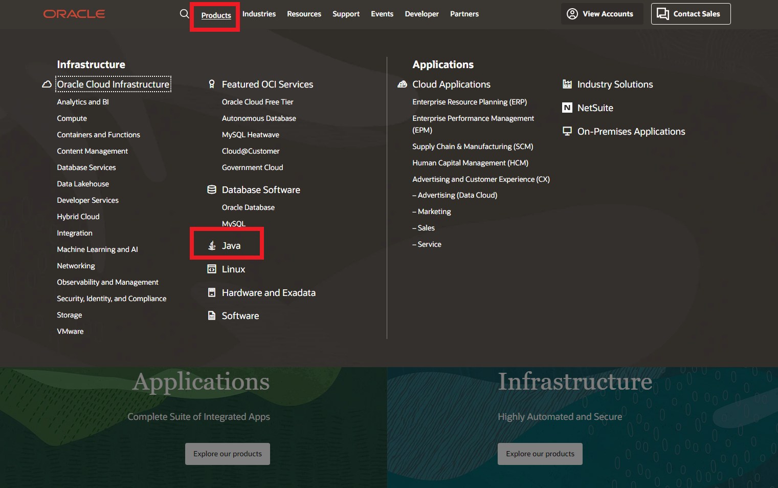 2. 상단에 Products -> Java