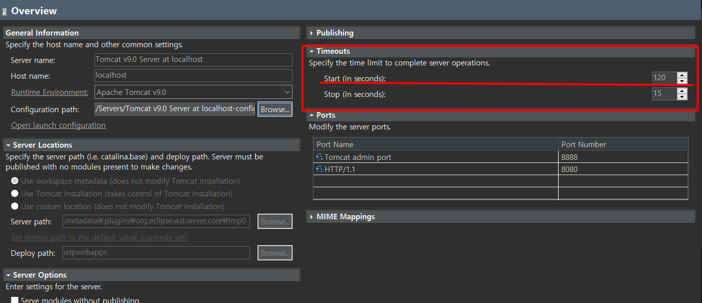 프로젝트 규모가 클 경우 시작되는 시간이 오래걸리므로 여유있게 120초(2분)으로 설정